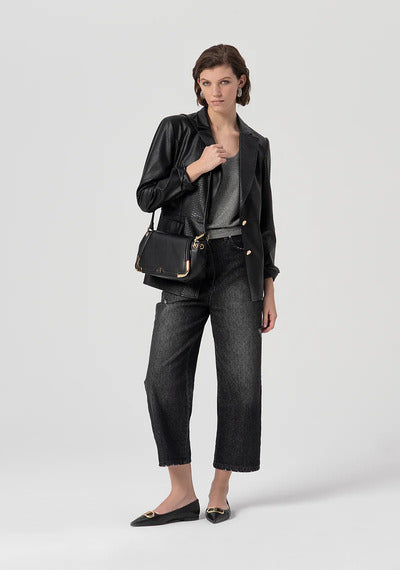 Calça jeans boyfriend confeccionada em denim preto com lavagem média
